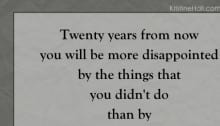 “Twenty years from now you will be more disappointed by the things that you didn’t do than the things you did do. So throw off the bowlines. Sail away from the safe harbor. Catch the trade winds in your sails. Explore. Dream. Discover.” — Mark Twain