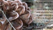 “Do not wait; the time will never be ‘just right.’ Start where you stand, and work with whatever tools you may have at your command, and better tools will be found as you go along.” — Napoleon Hill