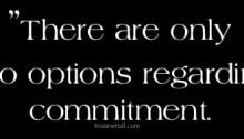 Life has been hectic this week, so I will once again post a favorite quote. “There are only two options regarding commitment. You’re either in or out. There’s no such thing as a life in-between.” — Pat Riley